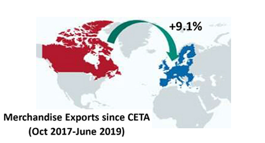 - Trade in goods: CETA eliminates tariffs and reduces barriers for virtually all sectors and aspects of Canada-EU trade. Prior to this agreement, only 25% of EU tariff lines on Canadian goods were duty-free. With CETA, 98% of EU tariff lines are now duty-free for Canadian goods.